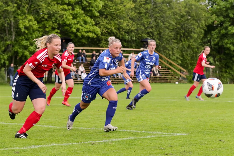 Ett tufft ”el gnällico” fick avsluta vårsäsongen i Svenska Spel F-19. Matchen var jämn, tuff, lärorik och slutresultatet skrevs till 1-1 när domaren blåste av matchen. Matchen inleddes med en hel del bolltapp från båda lagen. Det gjorde att spelet var väldigt fram och tillbaka främst på mittplanen inledningsvis. Eskilstuna var heta i sitt pressspel samtidigt som KIF inte riktigt ställt rätt sina fötter vilket bidrog till enkla bollvinster för Eskilstuna som tilläts ta kommandot. Trots inledningen hade båda lagen svårt att komma till någon vass chans på grund av bra försvarsspel från respektive lag. KIF är det laget som blir lite bättre och får till lite mer kombinationer i sin speluppbyggnad ju längre första halvlek går. Det ger också talangerna ett antal möjligheter till heta målchanser. Det dröjer dock till slutet av 1:A halvlek innan KIF tar ledningen genom Ida Björnberg vilket blir halvtidsresultatet. Andra halvlek är Eskilstunas rakt igenom. Det kommer ut som ett nytt lag, vinner dueller och trycker ner talangerna lågt. F-19 kommer inte riktigt ur situationerna när man äger bollen av många anledningar men den främsta för att motståndarna är heta i sin press. Trots att spelet beläggs på F-19 planhalva har Eskilstuna svårt att skapa heta chanser mycket på grund av ett offervilligt KIF i och runt sitt straffområde. Det gör att energi avtar från hemmalaget och öppnar möjligheter för kontringar för våra talanger. Vilket man också skapar några chanser på men saknar den rätta skärpan i avsluten. Trots ett F19 som sporadiskt kommer framåt och skapar chanser kan man tänka sig att energin och viljan som Eskilstuna hade skulle avta. Så blir det inte, utan det fortsätter arbeta hårt som ett kollektiv och påbörjar en bombadering mot ett lågt stående F-19 lag. Men Elin Ekmark i målet agerar med pondus och styr sitt lag exemplariskt och det får inte till den där riktigt heta chansen. Men tillslut måste KIF kapitulera och släppa in ett 1-1 mål. Utifrån matchbilden helt klart rättvist Matchen spelas mest av efter 1-1 målen men i matchens slutskede får F-19 ett gyllene läge att avgöra när man från ingenstans får ett friläge som man tyvärr inte förvaltar och Eskilstunas målvakt kommer ut fint på. 1-1 slutar matchen och hemsidan frågar kort Niklas om en kommentar; - Inte vår bästa prestation spelmässigt under våren men kan inte klaga på arbetsinsatsen.Spelarna försöker men får inte till det. Jag är nöjd med hur vi arbetar i (fora) ”förhindra rädda avslut.” Men är ruskigt missnöjd med vårt passningsspel över hela banan i denna match. Även om Eskilstuna pressar oss bra, behöver spelarna ha bättre individuellkvalité i aktionerna med bollen. Jag vet att samtliga spelare älskar att ha boll-driva spelet vara rörliga för att göra varandra bättre, men det syntes inte riktigt idag tyvärr. Oavgjort är rättvist resultat enligt mig. Nu blir det en välförtjänt vila inför hösten. Startelva KIF Örebro: Elin Ekmark(MV), Lea Ahl, Olivia Crona, Maja Fredriksson, Wilma Forsberg(ut 65), Ida Björnberg, Elsa Pelgander, Selma Rajakangas, Stina Dahlman, Thea Solalv, Jamie Tiuraniemi(ut 60) Avbytare KIF Örebro: Josefine Eklund (in 45) Stella Jansson, Stina Zackrisson(in 60), Emma Mellander Sellden(in 65) Foto: Rasmus Ohlsson
