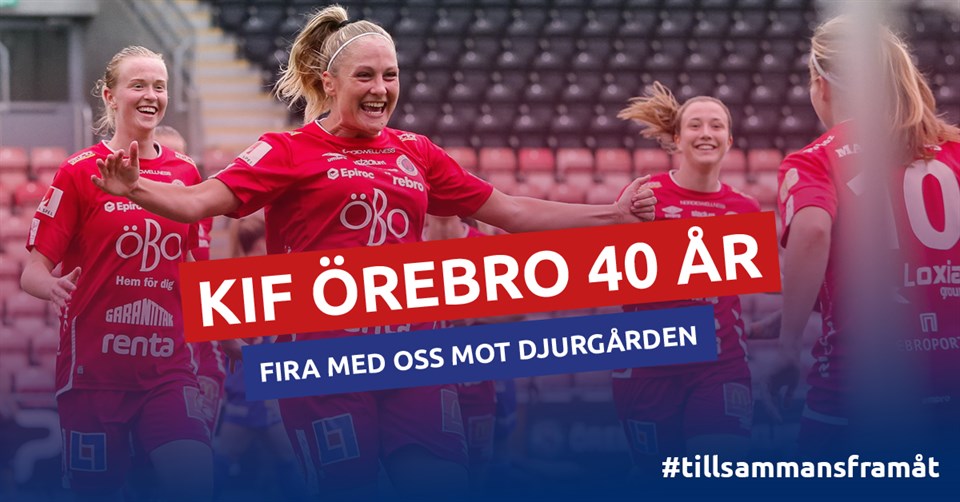 Det här är ett annorlunda år. Inte nog med att KIF Örebro firar 40 år i år, sedan damfotbollsverksamheten såg dagens ljus 1980. 2020 är också ett av de tuffaste åren i svensk idrottshistoria på grund av den globala coronapandemin. Vi klev in i 2020 med en målsättning att eliminera det negativa egna kapitalet, som har jagat klubben sen 2016. Vi har inte gett upp på den målsättningen – istället firar vi 40 starka år som pådrivande flick- och damfotbollsförening med att uppmana Örebro att bidra #tillsammansframåt för flick- och damfotbollen och KIF Örebro. Låt oss tillsammans försöka slå ett digitalt publikrekord på Behrn Arena när vi möter Djurgården den 11 oktober! Den 11 oktober möter vi alltså Djurgården hemma – och vi vill fira våra 40 år tillsammans med dig trots att publikbegränsningen fortsatt kvarstår till tidigast 15 oktober. Kan vi tillsammans slå förra årets publiksiffra mot Djurgården som var drygt 1000 personer? Eller rent av förra årets publikrekord på 1306 personer? Eller mer? Vi hoppas det! Swisha digital entré – symboliska 40 kronor per fiktiv stödplåt: swisha till 123 240 4648 (ange "Grattis" i meddelandet så vi vet att det är fiktiga födelsedagsbiljetter du köpt). Och ja, du köper så många födelsedagsbiljetter du vill! 1 biljett 40 kr, 2 biljetter 80 kr, 5 biljetter 200 kr och så vidare. Bland alla som köpt kommer vi lotta ut årskort till säsongen 2021. Vi håller dig uppdaterad på den digitala publiksiffran i våra kanaler. #tillsammansframåt är en rad insatser som siktar på 1 miljon i intäkter för klubben. En summa som skulle hjälpa oss hela vägen in i mål i år men också lägga grunden för de kommande 40 åren. En hel rad företag i Örebro är också med och firar KIF Örebro 40 år. Tillsammans visar de och du att KIF Örebro är en viktig del i stadens idrottsliv. Och framförallt att flick- och damfotbollen överlever corona! STORT tack på förhand för stödet! Foto: Rasmus Ohlsson