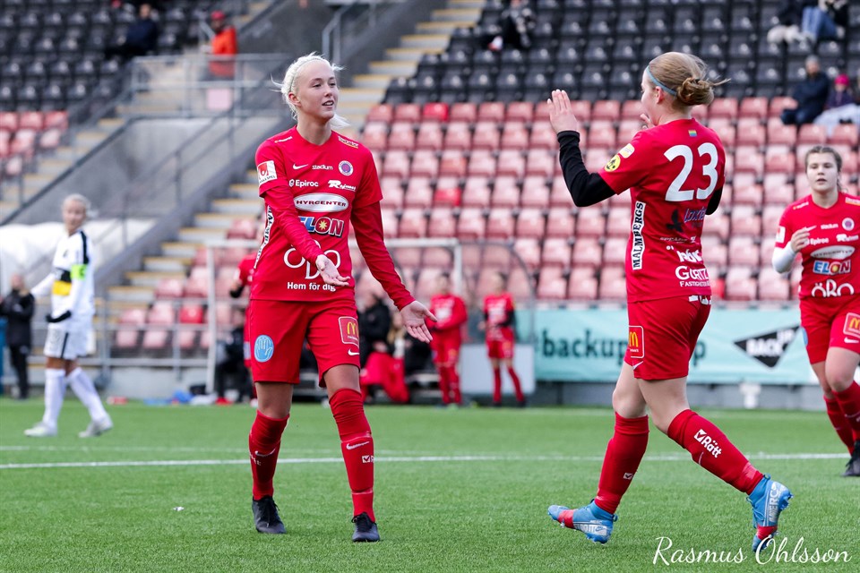 KIF Örebros talanglag F19 reste ned till Mölndal för att kicka igång årets upplaga av Svenska Spel F19-serien. Premiärmotståndet Jitex F19 segrade dock med 3-2 och KIF fick åka hem med 0 poäng. KIF Örebro reste ned till Mölndal och Åbyvallen med en ung trupp och utan A-lagsförstärkningar. Det blev en knapp förlust i en målrik match. 3-2 till hemmalaget slutade F19-premiären. – Vi kommer lite snett in i matchen och har mycket tekniska fel och bolltapp, samtidigt som Jitex är lite tuffare och därmed också vinner fler dueller. Det tar en stund, men vi jobbar oss in i matchen och skapar tryck. Men istället för ledningsmål för oss kommer kalldusch i form av ledningsmål för Jitex, äsger Micke Kindgren, tränare i F19, och fortsätter: – Det är ett sämre uppspel som leder till att Jitex får kontra, och de sätter därmed 1-0. Jitex gör 2-0 och 3-0 strax därefter och KIFs underläge utökas. – Deras 2-0 kommer på ett snyggt långskott. Efter någon minut till kommer 3-0, detta efter ytterligare ett kostsamt bolltapp. Då hade det gått 25 minuter av matchen. Tung uppförsbacke för KIF. Men Rebecka Mannström tar KIF tillbaka in i matchen med reduceringsmål. 3-1. Och i slutet av halvleken sitter KIF också 3-2 via Ida Adamsson. – Vi går ut i halvtid med kontakt igen inför andra. Och vi börjar ganska bra i andra men fortsätter tappa ganska mycket boll och får inte till vårt passningsspel mot ett aggressivt och hård jobbande hemmalag. KIFs kvitteringsjakt kommer av sig när Clara Heiche blir utvisad med 20 minuter kvar. – I värmen som är blir det riktigt tufft att få till forceringen då. Vi har en hörna som är riktigt farlig, men som räddas på mållinjen. Moa Zakrisson i mål gör också några vassa räddningar när vi chansar offensivt på slutet. Men det räckte inte till för att knipa poäng. Totalt sett en jämn match. Uppförsbacken med 3-0 efter 25 minuter blir för tuff, helt enkelt. Ändå starkt att komma tillbaka och nästan knipa med oss poäng. Jitex F19 – KIF Örebro F19 3-2 (3-2) Startelva: Moa Zakrisson, Zelda Stadsdahl, Clara Heiche, Annie Holst, Alva Hyttinen (ut 65), Ida Adamsson, Elin Lindbäck, Filippa Johansson (ut 45), Ida Hammarland (ut 80) Rebecka Mannström, Ida Lilja Avbytare: Nova Söderström (in 45) , Linnea Gerdtsson (in 65), Ruth Segerström (in 80) Foto: Rasmus Ohlsson