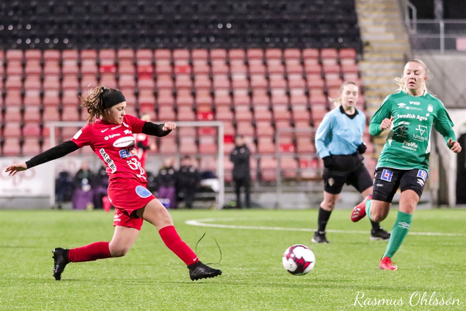 Så här mitt i coronatider bryter vi av med lite fotbollssnack med nykomlingen från Eskilstuna, Cajsa Åkerberg. Hur känns det att spela för KIF Örebro? – Det känns verkligen jättebra, har trivts så bra sen första dagen vi började träna med laget i januari, utropar Cajsa Åkerberg. Hur var det att lära känna de nya lagkamraterna och Örebro som stad? – Det var hur lätt som helst! Alla var så inbjudande och snälla. Sedan var det även några bekanta ansikten, så det var också en trygghet i början. Örebro som stad är verkligen jättetrevlig och mysig på alla sätt, jag är positivt överraskad! Vårsäsongen har ju inte precis blivit som vanligt. Hur tänker du om det? – Det är väl såklart många olika tankar från dag till dag, i vad man känner kring det, men någonstans så har man ändå landat och bara accepterat hur läget är. Det är ju trots allt lika för alla, säger Åkerberg. Kan det vara en fördel för oss som har många nya i laget, att säsongsstarten dröjer? – Absolut! Det skulle jag helt klart säga. Vi får mer tid till att lära känna varandra som fotbollsspelare, vilket är en fördel för att bli mer samspelta på fotbollsplanen. Hur vill du beskriva dig själv som fotbollsspelare? – Jag skulle beskriva mig själv som en lagspelare som är bra på att sätta mina medspelare i bra lägen. Bra spelförståelse och speluppfattning på planen. Vad vill du se från dig själv och från KIF när säsongen väl kommer igång? – Jag vill ta för mig på planen och sen vill man ju alltid bidra med poäng. Som lag vill jag se oss som hungriga och orädda, samt att vi spelar med självförtroende, avslutar Cajsa Åkerberg. Text: Jan Holgersson Foto: Daniel Lubner
