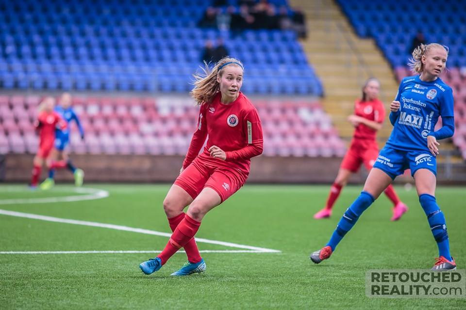 Förlust hemma på Behrn mot division 1-laget Säffe SK med 1-2. En bra första halvlek följs av en lite sämre andra där vi också släpper in lite för för enkla mål. En bra första halva där båda lagen skapade sina chanser. Säffle fick bra betalt för sin höga press och skapade en del på det. Dock var Elin i målet ( inlånad från Adolfsberg) riktigt bra med vid dessa tillfällen. Framåt en hel del positivt med mycket rörelse och löpvilja som vi skapade farligheter på. Andra halvlek lägre tempo och mer hafsigt spel och vi hade svårare att få till längre anfall. Säffles båda mål tillkommer efter slarv från oss och det måste vi slipa bort. Vårt mål göra av Sabbe som snyggt lyfter in den efter att ha stressat en försvarare högt. Närmast väntar nytt division 1 motstånd - ÖSK hemma på torsdag