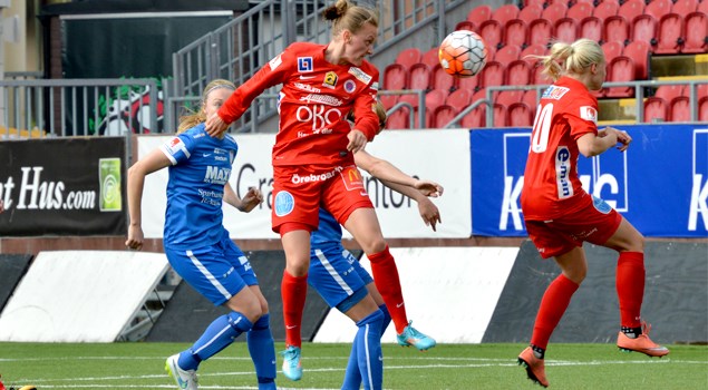 KIF Örebro förlorade med 1-4 mot ett formstarkt Eskilstuna. Matchinledningen var jämn. Efter 10 minuter hade Adelisa Grabus en bra målchans, men eskilstunaförsvarare lyckades styra skottet utanför. Efter 12 minuter tog Eskilstuna ledningen genom ett märkligt mål där ett täckt skott studsade upp i huvudet på Annica Svensson, vars nick seglade in över Carola Söberg. Eskilstuna hade sedan en bra period och skapade fler chanser. 0-2 kom efter ett långt inlägg och ett litet missförstånd i KIF-försvaret. Då hade 24 minuter gått. Resten av halvleken var jämn och vi noterar en nick utanför av Melissa Tancredi. Andra halvlek inleddes med Eskilstunas tredje mål där Carola Söberg först stod för en kvalificerad räddning i ett två-mot- två-läge, men Söberg kunde inget göra då Olivia Schough slog in returen. Tremålsunderläget tvingade KIF att gå framåt, vilket öppnade för kontringar. På en sådan gjorde Schough 0-4. Marie-Eve Nault var med och störde, men Schough lyckades få in bollen i mål. KIF Örebro gav inte upp och flyttade upp spelet. Veronica Perez sköt ett pressat skott strax utanför och efter 70 minuter kom en riktig soloprestation av Hanne Gråhns, som drev upp bollen, vände bort en back och skruvade in 1-4- reduceringen vid målvaktens vänstra stolpe. Kort därefter fick vi se flera bra anfallsspel från KIF med många spelare inblandade, men inga fler mål föll. Matchen slutade 1-4. Målskyttar: KIF Örebro: Gråhns Eskilstuna: Svensson, Quinn, Schoughx2 KIF Örebro: Carola Söberg (K) Hanne Gråhns, Anna Björk Kristjansdottir, Marie-Eve Nault, Elin Johansson Julia Spetsmark, Veronica Perez, Michelle de Jongh (ut 73), Ogonna Chukwudi (ut 84) Adelisa Grabus (ut 53), Melissa Tancredi. Inhoppare: Freja Olofsson (in 53), Lejla Basic (in 73), Jennie Wecksell (in 84) Text: Jan Holgersson