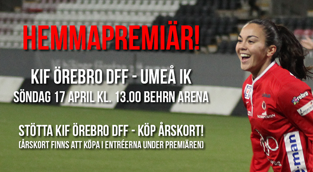 På söndag är det äntligen dags för KIF Örebros premiär i årets Damallsvenska, kanske årets bästa dag! Tyvärr har vi haft problem med att få fram medlemskort som används för att få fri entré på hemmamatcherna. De kommer att levereras till oss idag 15 april. Vi vet att det är sent och ber verkligen om ursökt för det. För att lösa situationen kommer vi ha medlemskorten utanför entrén till Behrn Arena på söndagens match. Så, du som betalat medlemsavgift uppger ditt namn där så får du ditt kort. Även ledare för ungdomslagen kan hämta ut sina kort här. Har du vägarna förbi Idrottshuset i eftermiddag kan du se om vår nya klubbchef är på plats på kansliet så kan du hämta ut ditt kort! Kansliet finns högst upp i Idrottshuset på Eyragatan vid Behrn Arena. Klubbchef Anders Nilsson nås på 070-226 99 11.
