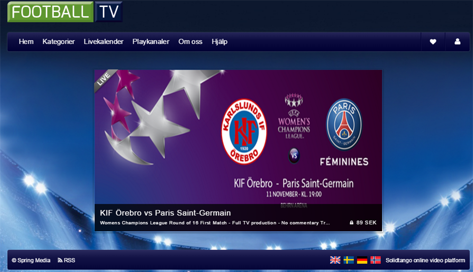 Ikväll är det äntligen dags för 8-delsfinal i Women's Champions League! Kl. 19.00 är det avspark för KIF Örebro-Paris Saint-Germain på Behrn Arena i Örebro. Vi hoppas självklart på en stor publik på plats! För er som inte kan vara på plats på Behrn Arena ikväll finns möjlighet att se matchen via livestream på www.footballtv.org. Det kostar 89 kr att köpa matchen.