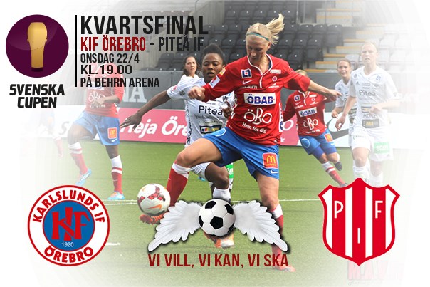 Imorgon smäller det på Behrn Arena då KIF Örebro tar emot allsvenska Piteå IF i en kvartsfinal i Svenska Cupen. KIF Örebro, som slog ut Kvarnsveden i senaste omgången av Svenska Cupen, kommer till spel med ett oavgjort resultat i ryggen då man spelade 0-0 mot Vittsjö i helgen. Piteå IF, som på ett imponerande sätt slog ut Eskilstuna United i senaste omgången av Svenska Cupen, kommer även dom till spel med ett oavgjort resultat i ryggen då de spelade 0-0 i helgens bortamatch mot Kopparbergs/Göteborg FC. Lagens två senaste möten i damallsvenskan har slutat med en vinst för vardera lagen. KIF Örebro vann fjolårets match på Behrn Arena med 3-2 efter två mål av Ogonna Chukwudi och ett mål av Sarah Michael. På LF Arena var det Piteå IF som stod som segrare efter att Piteås June Pedersen gjort matchens enda mål. Morgondagens startelva för KIF Örebro ser ut enligt följande: Carola Söberg Susanna Lehtinen - Marina Pettersson-Engström - Sara Nordin - Jennie Wecksell Julia Spetsmark - Lisa Dahlqvist - Elin Magnusson - Linda Hallin Sanna Talonen - Sarah Michael Avbytare: Mimmi Paulson Febo, Maria Synnerdahl, Hanne Gråhns, Michelle De Jonghs, Adelisa Grabus Anmärkningsvärt är att Lisa Dahlqvist är tillbaka i startelvan efter sin skada. Avspark: 19.00! Vi ses, på Behrn Arena!