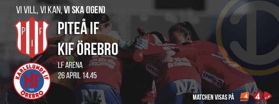 I skrivande stund sitter hela vår trupp på bussen mot Piteå och det blir en lång resa med en övernattning på vägen. Våra spelare gjorde en väldigt bra insats i Cupmatchen mot Piteå i onsdags med en säker vinst på 5-1 (5-0). Rickard Nilsson är en klok tränare och vet att det är en helt andra förutsättning som gäller på bortamatchen i Piteå, där hemmapubliken brukar vara stor och röststark, konstgräsplanen är lite mindre samt av äldre model som kan göra den lite mer svårspelad. Det som var extra roligt med Cupmatchen var att vi fick fyra olika målgörare och att många fick speltid. Förra året förlorade KIF Örebro med 1-0 på bortamatchen mot Piteå, vi kan räkna med att våra spelare är taggade till max och är redo att ge allt i varenda sekund av matchen för att få till ett bra resultat, allra helst årets första trepoängare i Damallsvenskan Rickard har tagit det bästa laget som vi kan ställa på benen och alla vet att det kommer kräva ett väl fungerande lagspel i både defensiven och offensiven. På det två första matcherna har det bara blivit ett mål framåt och målsättningen är få till en väl fungerande offensiv som laget visade i Cupmatchen. Startelvan: Målvakt: 21. Carola Söberg - Backlinje: Elin förstärker upp försvaret 4. Susanna Lehtinen 6. Marina Pettersson-Engström 2. Sara Nordin 12. Elin Magnusson ----- Mittfältet: ser mycket spännande och intressant ut, Ogonna åter efter skada och Michelle är utvilad samt grymt spelsugen. Lisa har tränat på bra under veckan och har säkert ork för en hel match om det behövs. Julia visade sin spetskomptens med sitt snygga mål i cupmatchen. 20. Julia Spetsmark 18. Michelle De Jongh 7. Lisa Dahlkvist 13. Ogonna Chukwudi --- Forward: Sanna gjorde två mål och Sarah ett mål i cupmatchen samt visade att hårt arbete lönar sig, båda är målsugna samtidigt som de jobbar stenhårt framåt och bakåt 10. Sanna Talonen 11. Sarah Michael ---- Avbytare: En väldigt stark bänk med många bra spelare som är redo för inhopp 35. Mimmi Paulsson-Febo 16. Maria Synnerdahl 8. Hanne Gråhns 17. Linda Hallin 15. Jennie Weksell --- Det blir spännande att följa matchen på distans och vi alla KIF:are hoppas självklart på att laget gör en toppmatch och får alla tre poängen med sig på den långa hemresan. Du har väl bokat in nästa hemmamatch mot Mallbacken 1maj kl:14:00, välkomna!