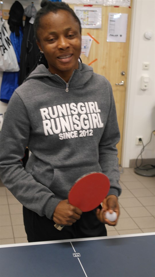 Ogonna Chukwudi Född: 1988-09-14 Kom till KIF Örebro: 2014 Antal allsvenska matcher: 2014 19 matcher med KIF Örebro och 59 med Umeå IK Antal mål: 12 (4 under 2014 med KIF Örebro) ”Vad tror du om säsongen 2015 och årets nyförvärv” - Jag tror vi får en riktigt bra säsong. Våra nya spelare är väldigt bra och de kommer tillföra extra styrka och rutin i laget. Det känns inspirerande att få träna med så bra spelare och de märks att de ger allt på träningar och matcher ”Har du några personliga mål” - Ja det har jag, men det kommer få bli min hemlighet som jag behåller för mig själv ”Dina starka sidor på fotbollsplanen” - Jag är bäst och starkast på ”en mot en” situationer ”Har du några svaga sidor som du tränar extra på” - Ja alla spelare på har det, men mina svagheter är min hemlighet ”Vad är det bästa att spela med KIF Örebro” - Om jag ska räkna upp allt som är bra så tar det hela dagen. Jag kan sammanfatta det med ett ord att det finns massor med ”LOVE” som gör att vi älskar att träna och spela tillsammans. Lagandandan förstärks när det finns ”Love” vi tolererar och stöttar när det behövs samt peppar varandra på ett positivt vis som gör att gruppen blir bättre och jobbar tillsammans mot våra mål. ”Vad tycker du om våra tränare Rickard Nilsson och Johan Svensson” - Rickard är den bästa tränare jag någonsin har haft. Johan och Rickard har passion, tolerans och alla de bästa samt positiva egenskaperna som elittränare bör ha. ”Hur känns det nu inför seriepremiären” - Jag känner mig bra. Rickard har gjort allt och lite till som förväntas, jag och resten av laget är redo. Ikväll ska jag spela en bra match mot AIK som är vår sista träningsmatch, avslutade Ogonna innan hon gick hem för att vila sig inför matchen. Ni som såg matchen vet att Ogonna var väldigt bra och gjorde bl.a. ett nickmål samt slog ett perfekt inlägg till Sarah M som nickade otagbart in bollen i mål till 2-0 som blev slutresultatet. Våra två Nigerianska spelare är säkert på väg mot en toppform som kommer behövas redan till seriepremiären mot FC Rosengård nu på söndag hemma på Behrn Arena kl. 14:45. Alla är hjärtligt välkomna! Bilden: I omklädningsrummet spelas det minipingis och även Ogonna får visa upp sina färdigheter