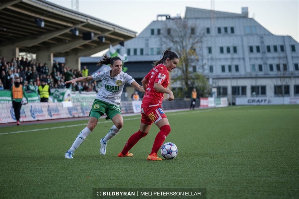 I den näst sista omgången av OBOS Damallsvenskan 2022 var det dags för KIF Örebro att möta Hammarby IF på bortaplan. Det märktes att KIF Örebro håller i det goda självförtroendet och inte viker sig för ett starkt motstånd. Efter en jämn och stundtals hårdkamp slutade matchen 0-0 och båda lagen fick med sig en poäng. Hemmalaget inledde starkt med press. I den andra minuten plockade Tove Enblom ned inlägg från Hammarby. Minuten senare hade Bajen ett till inlägg som kunde blivit riktigt farligt, men denna gång gick bollen förbi alla spelare. I minut 4 hade Hammarby ett farligt anfall som dessvärre för hemmalagets del slutade med att Madelen Janogy skadade sig. I den 8:e minuten hade Katie Lockwood ett farligt skott, precis utanför mål. Ett par minuter senare var hon på hugget igen men denna gång blockade en Hammarby-spelare skottet. Kort därefter fick Heidi Kollanen till ett inlägg, men tyvärr förbi alla spelare. I minut 14 prövade hemmalaget på ett distansskott, men det gick utanför mål. Minuten senare kom det ett inlägg från KIF men målvakten plockade ner bollen. I minut 18 fick Heidi Kollanen slå en frispark men den nådde tyvärr ingen KIF-spelare. Fyra minuter senare levererar Michaela Kovacs en viktigt brytning som annars kunde blivit ett farligt Hammarby-anfall. Kort därefter hade hemmalaget ett farligt anfall, men KIF lyckades komma emellan. Vilket följdes av ett skott från Hammarby, men bollen gick långt över mål. I den 25:e minuten hade KIF Örebro en frispark men den blev aldrig farlig. Desto farligare blev hemmalagets skott i den 28:e minuten men Tove Enblom levererade en riktig paradräddning. Den efterföljande hörnan ledde inte till något. I minut 31 hade KIF ett farligt inlägg men det gick förbi alla spelare inklusive Katie Lockwood som var närmast. Fem minuter senare kom matchens verkliga delikatess när Heidi Kollanen visade prov på otrolig teknik. Först lobbade hon bollen över sig när hon hade ryggen mot mål, sen snurrade hon runt och lyckades få iväg ett skott som gick via spelare och målvakt och till slut nådde ribban. Minuten senare hade Katie Lockwood ett skott som gick över mål. Kort därefter fick Heidi Kollanen till ett briljant inspel som ledde till ett farligt läge för Katie Lockwood, men målvakten tog den. I minut 40 prövade Emilia Pelgander på ett skott som dock gick långt över. Ett par minuter senare blev det en obehaglig sekvens när Berglind Ros Augustdottir satsade fullt på att nå bollen som gick mot målvakten vilket resulterade i att Begga krockade rejält med hemmalagets målvakt. Tack och lov utan någon allvarlig skada. Det sista som hände var en farlig frispark för Hammarby och sedemera en retur som gick i ribban. Tack och lov gick vi till pausvila med 0-0 på resultattavlan. Den andra halvleken hade knappt börjat innan Berglind Ros Augustdottir skadade sig. Tack och lov kunde hon komma in i matchen en stund senare. Starten på andra halvlek är påtagligt mer avvaktande än slutet på första. I minut 50 får Hammarby till ett inlägg men Tove Enblom plockar ner bollen. Ett par minuter senare har hemmalaget ett par farliga inlägg inklusive ett skott som Mouse täcker och som får en konstig studs och blir farlig, men tack och lov går bollen över mål. En period där det var mycket rörigt framför KIF-målet och det blev ytterligare en hörna. Strax därefter ett nytt Hammarby-anfall men denna gång blev det offside. I den 55:e minuten fick KIF Örebro sin första hörna. Det blev ett skott från Regan Steigleder på den returen, men dock inget lyckat resultat. Minuten senare blev det en farlig situation efter att Hammarby genomförde en misslyckad hemåtpass. Katie Lockwood gick på målvakten och det blev en krock. Katie blev skadad vid den situationen, men kunde sedan spela vidare i matchen. Därefter följer en period när båda lagen pressar på och har boll. I minut 60 har Hammarby en frispark men Berglind Ros Augustdottir rensar bort bollen. Ett par minuter senare har KIF en ny hörna. Denna gång är det Nathalie Hoff Persson som försöker sig på ett skott på returen, men bollen går långt över. I minut 65 visar Nathalie Hoff Persson prov på riktig kyla när det kommer ett inlägg från en Hammarby-spelare och hon väljer att släppa bollen för att hon vet att Tove Enblom är precis bakom och kan plocka bollen. Kort därefter har hemmalaget först ett inlägg och därefter ett skott men utan utdelning. I minut 68 genomförde KIF sitt första byte. Ut gick Katie Lockwood och in kom Wilma Öhman. Därefter följde en period med chanser åt båda hållen. Tove Enblom fick kliva fram och hantera flera situationer samtidigt som KIF också fick sin andel. I den 83:e minuten genomförde KIF Örebro sitt andra byte för dagen. Heidi Kollanen klev av och Amanda Rantanen byttes in. Det märks nu att spelarna är trötta och tempot går ner. I den 89:e minuten genomför bortalaget ett dubbelbyte. Elizabeth Perchersky och Emilia Pelgander kliver av. In kommer istället Lisa Frisk och Elsa Pelgander. Det blev fyra nervösa minuter i tilläggstid. I den 93:e minuten hade KIF två fina sekvenser när Lisa Frisk vid två tillfällen skarvade vidare till Amanda Rantanen som fick till fina skott. Dock utan resultat. KIF Örebro lyckades hålla tätt bakåt och matchen slutade 0-0 och vi fick med oss en poäng hem till Örebro. Hammarby IF – KIF Örebro 0-0 (0-0) Startelva KIF Örebro: Tove Enblom (MV), Nathalie Hoff Persson, Elli Pikkujämsä, Michaela Kovacs, Regan Steigleder, Elizabeth Perchersky (ut 89’), Emilia Pelgander (ut 89’), Carly Wickenheiser (K), Heidi Kollanen (ut 83’), Katie Lockwood (ut 68’), Berglind Ros Augustdottir. Avbytare KIF Örebro: Moa Öhman (MV), Frida Abrahamsson, Maja Regnås Valcic, Lisa Frisk (in 89’), Elsa Pelgander (in 89’), Wilma Öhman (in 68’), Amanada Rantanen (in 83’). Bilden i artikeln är fotograferad av Meli Petersson El