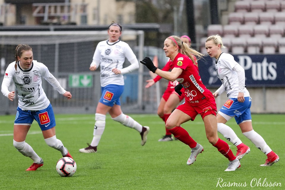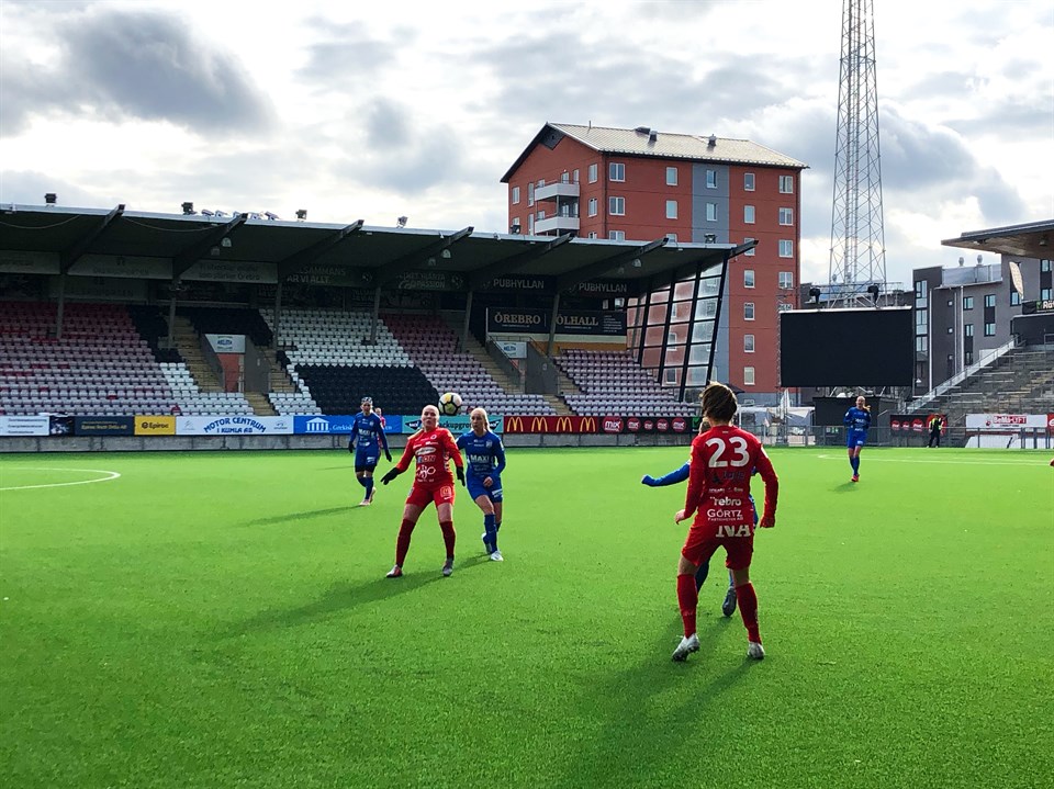 KIF Örebro tog säsongens andra seger när man vann med 3-0 över IK Uppsala Fotboll på Behrn Arena i Svenska Cupen. Matchen inleddes med ganska försiktigt spel där lagen kände på varandra. Inte mycket hände första kvarten men sedan hade Jonna Dahlberg ett par skott mot Uppsala-målet. Farligaste chansen hade dock Uppsala när man påpassligt bröt ett uppspel från KIF, men skottet gick alldeles utanför Danielle Rices högra stolpe. 1-0 kom efter en halvtimmes spel när Sara Lilja Vidlund tog sig fram i straffområdet och sköt. Målvakten reflexräddade men Sara petade in returen lågt vid stolpen. Uppsala skapade därefter ett par farligheter där Linnea Svensson var räddande ängel vid ett tillfälle med en viktig brytning. Istället kom 2-0 då Jonna Dahlberg tog sig fram i straffområdet och sköt. Målvakten var på bollen, men den studsade ändå i mål. I andra halvlek fortsatte ungefär som den första med jämnt spel ute på planen, men där KIF gjorde mål. 3-0 kom efter 65 minuter då Jenna Hellstrom tog sig fram på högerkanten och slog ett långt inlägg över målvakten till bortre delen av straffområdet. Där dök Kayla Braffet fram och sköt bollen i mål. I och med detta avgjordes i praktiken matchen. Resterande tid innehöll några chanser åt båda håll där Eveliina Summanens språngnick var den farligaste, men fler mål föll inte. KIF höll därmed undan till en säker seger mot ett IK Uppsala som stod upp väl spelmässigt mot ett mer effektivt KIF Örebro. KIF Örebro DFF – IK Uppsala Fotboll 3-0 (2-0) Målskyttar KIF Örebro: Sara Lilja Vidlund, Jonna Dahlberg, Kayla Braffet Så här spelade KIF Örebro: Danielle Rice Frida Abrahamsson, Linnea Svensson, Maja Regnås Kayla Braffet, Emma Kullberg, Elin Rombing, Jonna Dahlberg (ut 46), Emma Lindén (ut 46) Heather Williams, Sara Lilja Vidlund (ut 66) Inhoppare: Eveliina Summanen (in 46), Jenna Hellstrom (in 46), Addison Steiner (in 66) Text: Jan Holgersson Foto: Rasmus Ohlsson