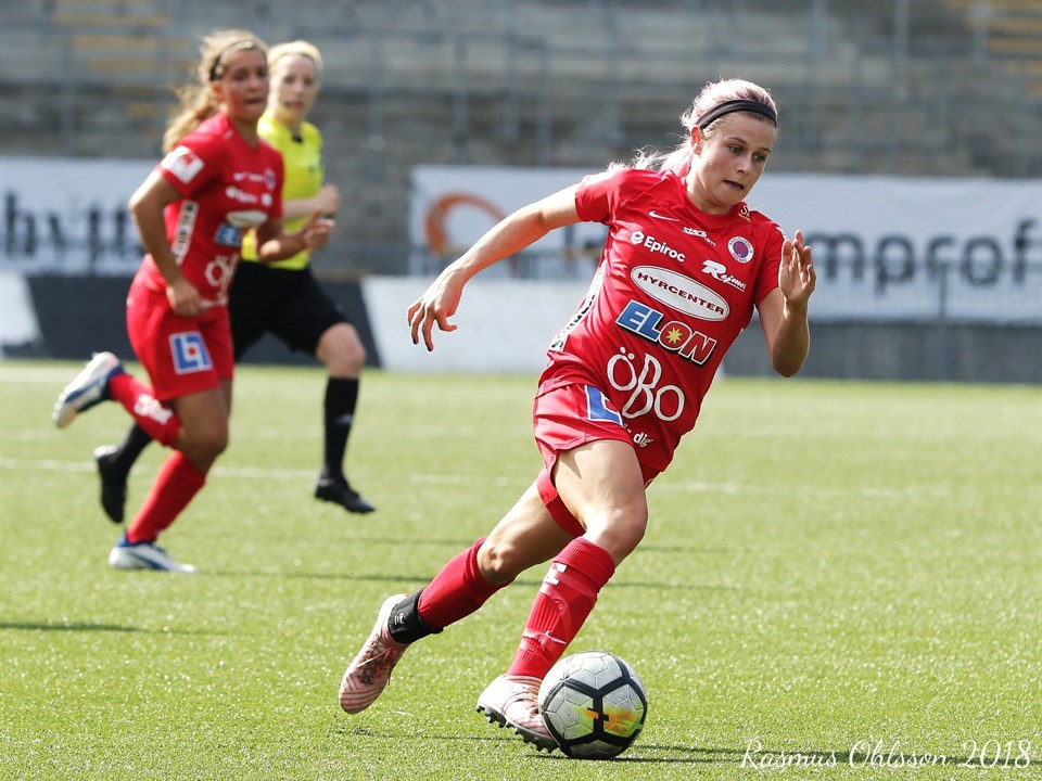 KIF Örebro vann med hela 4-0 över IF Böljan på ett somrigt Behrn Arena. Kristi Himmelfärdsdag bjöd på underbart försommarväder när KIF Örebro mötte IF Böljan i Elitettans femte omgång. Böljan började optimistiskt med hög press, men KIF Örebro tog tag i taktpinnen efter de första tio minuterna och dominerade sedan soklart den första halvleken. Efter 20 minuter hade Courtney Strode och Addison Steiner varsin bra chans och kort därefter var Adelisa Grabus framme och rullade en boll mot stolpen som målvakten lyckades tippa till hörna. 1-0 kom efter 25 minuter då Adelisa Grabus från vänsterkanten lyfte ett högt och långt inlägg som gick över målvakten mot bortre stolpen där Emma Lindén störtade fram och gjorde mål. Några minuter senare kom 2-0 då Rebecka Holm styrde upp ett anfall från mittplan och Addison Steiner frispelades och hade bara att raka in bollen i öppet mål. KIF fortsatte att rada upp chanser men lagen gick till halvtidsvila med 2-0 på tavlan. I det läget var det svårt att hitta något som talade för att Böljan skulle kunna vända matchen. - Det ser väldigt bra ut! Vi spelar snabbt och djupledsspelet är riktigt bra, kommenterade Hanne Gråhns från läktarplats i paus. Andra halvlek inleddes som den första med KIF-dominans och målchanser, men nu skapade även Böljan ett par hyggliga lägen. Efter 58 minuter kom 3-0 till KIF. Målet såg lite märkligt ut när Courtney Strode först passade över till Addison Steiner, som tappade balansen när hon hade bollen. Addison visade dock vilja, reste sig, behöll bollen och trängde sig förbi sin back och sköt i mål. Starkt! Ett par minuter senare kom 4-0. Åter var det Adelisa Grabus som tog sig fram på vänsterkanten. Adelisa såg att Rebecka Holm löpt sig fri i straffområdet. Holm fick bollen och vrickade in den vid bortre stolpen. I och med detta avgjordes matchen definitivt och KIF hann med att skapa ett par chanser till innan slutsignalen gick. Frida Abrahamsson var fullt naturligt nog nöjd efter matchen: - Väldigt bra genomförd match från vår sida. Vi hade full kontroll från början och vi har förbättrat vårt djupledsspel mycket. Vi vågade löpa i djupled och värderade också situationerna bra, kommenterade Frida Abrahamsson och fortsatte: - Mest nöjd är jag med attityden hos alla i laget. Vi skulle bara vinna matchen!, utropade Abrahamsson. KIF Örebro - IF Böljan | 4-0 Matchens lirare: Addison Steiner, KIF och Linda Nöjd, IF Böljan Publik: 302 Så här spelade KIF Örebro: Mimmi Paulsson-Febo Frida Abrahamsson, Emma Östlund, Maja Regnås Adelisa Grabus (ut 81), Rebecka Holm, Lejla Basic, Freja Olofsson (ut 65), Emma Lindén (ut 69) Addison Steiner, Courtney Strode Inhoppare: Maja Andersson (in 65), Jonna Dahlberg (in 69), Sara Lilja Vidlund (in 81) Text: Jan Holgersson