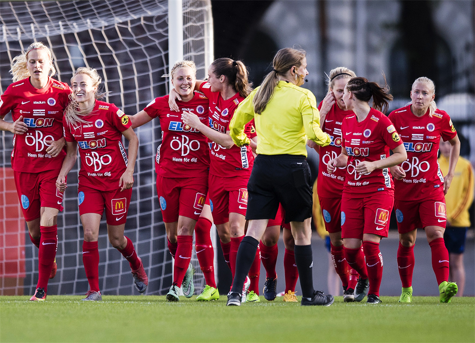 KIF Örebro jobbade stenhårt mot serietrean Eskilstuna, men fick till slut se sig besegrade med 0-1. Eskilstuna inledde matchen bäst och höll bollen inom laget. Efter några halvchanser för gästerna åt sig KIF Örebro successivt in i matchen och jämnade ut spelet. Men, efter 31 minuter tog Eskilstuna ledningen efter att ha utnyttjat en spelvändning där hemmalaget inte riktigt hängde med. I slutet av halvleken var det nära 0-2, men Carola Söberg räddade närskottet och Lisa Dahlkvist jobbade hem och rensade undan returen i sista stund. I andra halvlek var KIF Örebro tvungna att gå framåt för att få till en kvittering. Det gav såklart Eskilstuna ett antal möjligheter att spelvända, men stabilt spel från hela backlinjen, hårt mittfältsjobb i båda riktningarna av Fanny Andersson, samt avgörande räddningar av Carola Söberg gav verkligen laget chansen att ta poäng. Det offensiva spelet hade emellertid inte den timing och precision som hade behövts mot ett stabilt spelande Eskilstuna på onsdagskvällen. KIF fick se sig besegrade med uddamålet i en, trots förlusten, trevlig match inför storpublik på Behrn Arena. KIF Örebro - Eskilstuna 0–1 (0–1) Målskytt Eskilstuna: Ingrid Schjelderup Matchens lirare: Hanne Gråhns, KIF, Nathalie Björn, Eskilstuna Varningar: Fanny Andersson, KIF, Ingrid Schjelderup, Eskilstuna Publik: 1311 personer Så spelade KIF Örebro: Carola Söberg Hanne Gråhns, Frida Svensson, Marina Pettersson-Engström, Emelie Andersson Freja Olofsson (ut 67) , Michelle de Jongh, Fanny Andersson, Lisa Dahlkvist Julia Spetsmark, Jenny Hjohlman Inhoppare: Lejla Basic (in 67) Text: Jan Holgersson