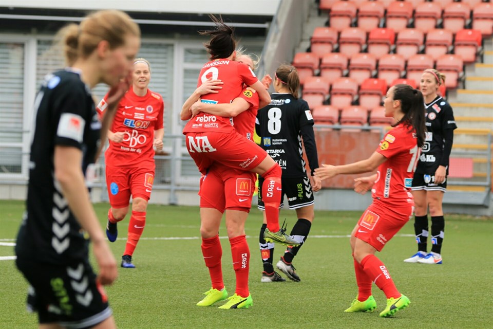 Äntligen var det dags för premiär i Damallsvenskan. För KIF Örebros del inleddes säsongen med att möta Kopparberg/Göteborg FC på bortaplan. KIF Örebro höll spelet väl uppe matchen igenom och kunde mycket väl tagit poäng, men fick till slut se sig besegrade med 1-0. Under första halvlek krånglade TV-sändningen, men kan konstatera att KIF enligt matchstatistiken skapade sex avslut och en hörna. Lisa Dahlkvist, Jenny Hjohlman, Emma Jansson och Fanny Andersson avslut gick på mål, medan Michelle de Jongh och Julia Spetsmark avslut gick utanför. Spetsmarks skott var riktigt farligt, men ställningen var 0-0 i paus. Andra halvlek inleddes lite försiktigt, men sedan hade Göteborg en bra period med flera farliga chanser. Däremellan stack KIF Örebro upp i en kontring. Julia Spetsmark drev upp på högerkanten och hittade Emma Jansson med ett inlägg. Emma tacklades dock i ryggen och gavs inte möjlighet att få till någon nick. Göteborg pressade tillbaka KIF Örebro mitt i halvleken och var nära att ta ledningen flera gånger om, men KIF Örebro höll tätt efter bra ingripanden av Marina Pettersson-Engström, Emelie Andersson och Carola Söberg. Mot slutet av matchen kom KIF Örebro igång mer och mer och såg till slut ut att få visst grepp på Göteborg. Då kom kallduschen i form av en spelvändning där Pauline Hammarlund satte 1-0 efter 83 minuter. KIF Örebro gick sedan framåt med allt man hade den korta tid som var kvar, men lyckades inte få till några riktigt heta kvitteringschanser. Matchen slutade med hemmaseger. Kopparberg/Göteborg FC – KIF Örebro 1-0 (0-0) Målskytt: Pauline Hammarlund Matchens lirare: Julia Spetsmark och Pauline Hammarlund Så här spelade KIF Örebro: Carola Söberg Emelie Andersson (ut 88), Marina Pettersson-Engström, Frida Svensson, Hanne Gråhns Emma Jansson, Fanny Andersson, Lisa Dahlkvist, Michelle de Jongh (ut 88), Julia Spetsmark Jenny Hjohlman Inhoppare: Hanna Terry (in 88), Freja Olofsson (in 88) Text: Jan Holgersson