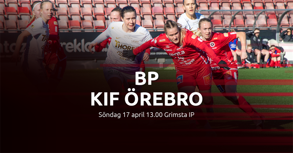 KIF Örebro går in i tredje omgången av OBOS Damallsvenskan med en seger och en förlust i bagaget mot Djurgården respektive AIK. Motståndet den här påskhelgen står nykomlingarna BP för, och matchen spelas borta på Grimsta IP. Avspark sker 13.00. Huvudtränare Rickard Johansson inför matchen: – BP har inlett säsongen över förväntan. Först en bra match mot Rosengård och sen vinst mot Umeå. Vi förväntar oss att vi ska ha mycket boll och vår förhoppning är att våra offensiva nycklar som fungerade mot Djurgården även ska fungera i denna match. Läs hela miniintervjun med honom här> Matchen sänds på Viaplay – där du kan se ALLA matcher i OBOS Damallsvenskan. Glöm inte att ange "OREBRO2022" när du köper ditt abonnemang så stöttar du KIF Örebro!
