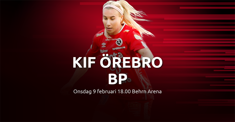 Onsdagen den 9 februari kl 18.00 spelar KIF Örebro årets andra träningsmatch, mot damallsvenska nykomlingen BP. Ett ungt talangfullt lag kom hem från träningsmatchen i Linköping i lördags med en hedersam förluts (2-1 till LFC) i bagaget, där KIF dominerade första 30+ minutrarna. Hemma mot BP kommer fler av de internationella spelarna att matchas och laget får en välbehövlig andra match i benen. Grindarna på Behrn Arena öppnar 17.45 och valfritt inträde gäller (via swish).
