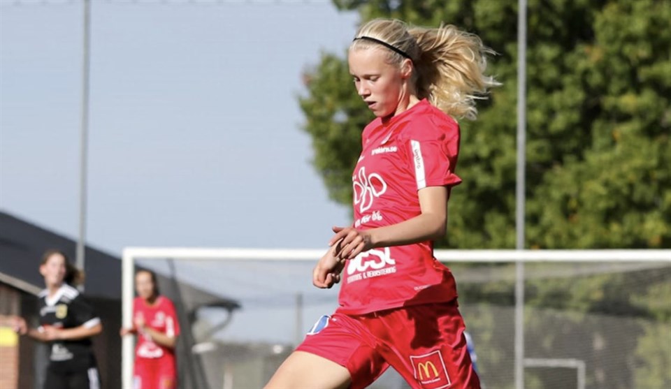 Precis som att F19 arbetar för att lyfta spelare till A-laget har föreningen under hela året arbetat för samma sak i F17 - vilket har lett till att Stina Dahlman nu tar klivet upp till F19. Dahlman har under bland annat Johan Brcics ledning i F17 tagit enorma steg i sin utveckling, och är en spelare som trivs bäst i backlinjen, har fina fötter i sitt passningsspel och gillar att attackera motståndarna med sin explosivitet oavsett om det handlar om anfall eller försvar. Stina Dahlman, som i princip hela hösten tränat med F19 truppen men haft sin hemmiljö i F17, kommer alltså från och med 2022 tillhöra F19. – Stina har under 2021 haft ett riktigt bra år. Hon har hunnit med att blivit kallad på landslagssamlingar och dessutom spelat landskamper och fick dessutom utmärkelsen årets spelare i F17. Vi är imponerade och stolta över hennes resa. Hon är redo för klivet och det känns bra att vi kan möjliggöra det i vår utvecklingsmiljö, en miljö ständigt under utveckling, säger Niklas Christensson, tränare i F19, och fortsätter: – Spännande spelare att få arbeta med där hon är en karaktärspelare som alltid checkar in för att göra sitt bästa. Jag tror och hoppas hon fortsätter driva sig själv och sin omgivning lika mycket framöver! Stina Dahlman själv är laddad. Hur känns det att ta steget upp till F19? – Det känns väldigt kul att få vara en del av F19-laget nästa år. Mitt mål är att fortsätta utvecklas som spelare på plan då jag tror detta är ett bra steg för min fotbollsutveckling. Dessutom tycker jag att det är en härlig stämning i laget och jag ser fram emot nästa säsong väldigt mycket. Vad har året i F17 betytt för dig? – Jag tycker att året i F17 varit väldigt spännande och givande eftersom jag känner att jag utvecklats mycket som fotbollsspelare. Jag har även fått umgås och spela med väldigt härliga människor i laget. Vad tycker du om KIF? : – Hittills tycker jag att KIF Örebro gett mig som spelare bra förutsättningar för att lyckas. Det är roligt att KIF börjat satsa på sin elitverksamhet och därmed få den här chansen som ung spelare. Jag gillar att de har ett bra samarbete mellan bl.a. F17 och F19 eftersom det gör att man ständigt får utmanas i sin fotboll. Hur ser din stora fotbollsdröm ut? – Jag har många drömmar inom fotbollen. En dröm är såklart att spela i KIF Örebros A-lag. Sedan är ett mål att komma med i landslaget och även spela fotboll på högsta nivå runtom i världen. Dahlman var uttagen till ungdomslandslagsläger nyligen, men fotskada satte stopp för det - den här gången. Foto: Rasmus Ohlsson