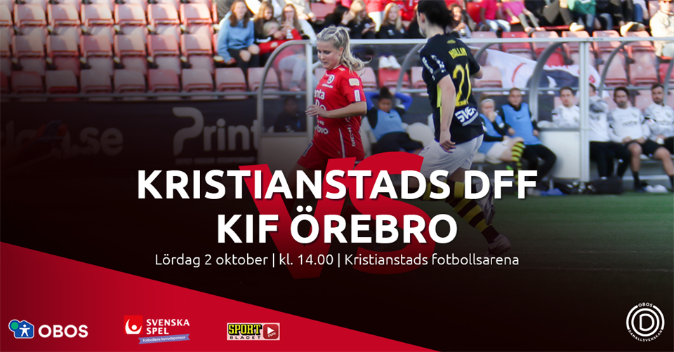 OBOS Damallsvenskan går nu in i slutspurten och för KIF Örebro står bortamatch mot Kristianstad på programmet i morgon lördag. Kristianstad vann, precis som KIF, i Svenska Cupen nyligen och senaste seriematchen klarade man oavgjort mot Rosengård. I tabellen ligger laget på fjärde plats, fem poäng före KIF. KIF Örebro har visat urstark höstform och vunnit fyra av de fem senaste matcherna och har därigenom lämnat botten i tabellen och placerar sig nu i den stora gruppen mittenlag. Det är med andra ord bäddat för en bra fotbollsmatch mellan två bra lag. Hemsidan återkommer med kommentarer nedifrån Skåne lördag kväll. Kristianstads DFF - KIF Örebro, lördag 2 oktober kl 14.00, Kristianstads Fotbollsarena Se matchen på Sportbladet Play >> Stötta KIF Örebro genom att bli drömsupporter Som Drömsupporter är du med och förverkligar tjejers fotbollsdrömmar, och stöttar våra sociala insatser. Tillsammans tar vi ansvar för flick- och damfotbollen, och samhället vi lever i. Bli drömsupporter. Text: Jan Holgersson Foto: Hasse Persson/Hasses Sportbilder