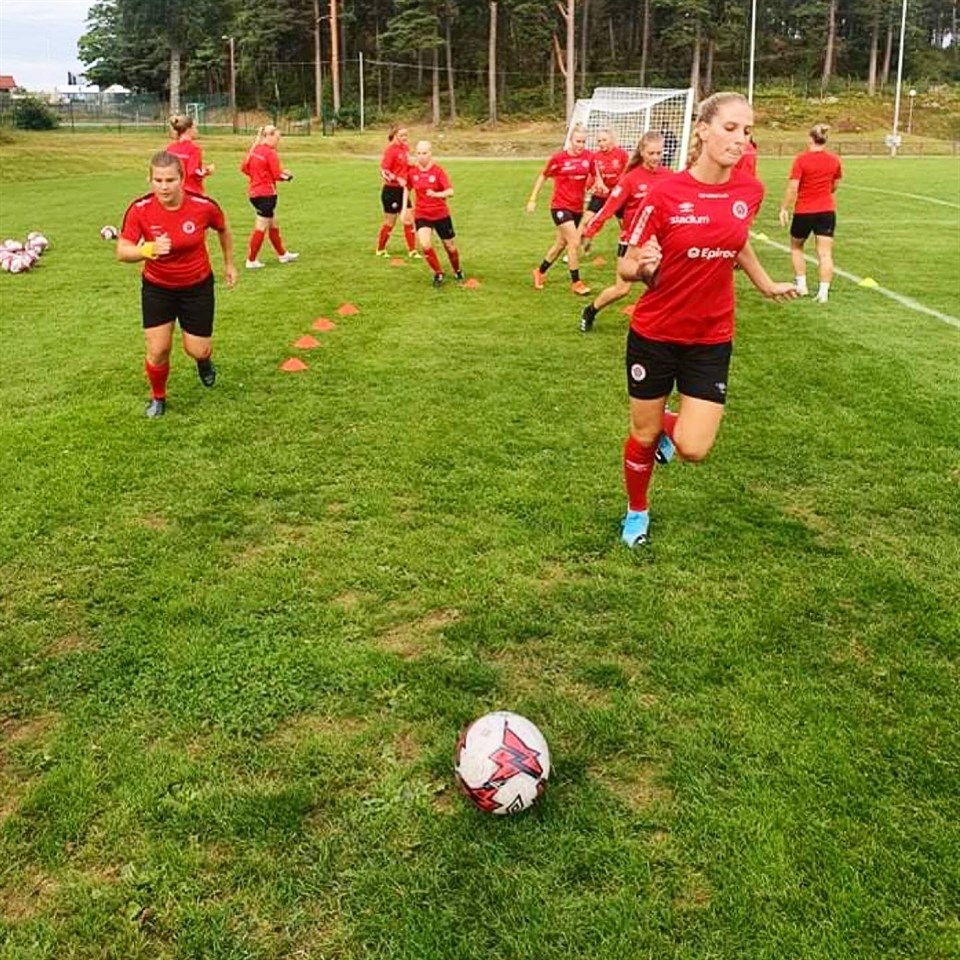 I helgen har KIF Örebros F19 lag varit på träningsläger i Åmål. Här kommer en rapport från ett mycket lyckat läger: Under fredagen lämnade minibussarna Behrn Arena, och rullade mot den dalsländska pärlan drygt 2,5 timmar bort. På programmet: Tre träningspass, padelturnering, bad, matlagning och mycket annat smått och gott. – Under helgen var tanken egentligen att laget skulle delta på en elitcup i Stockholm, men den ställdes dock in på grund av restriktionerna och då valde vi att istället planera in ett läger i Åmål, säger Micke Kindgren, tränare i F19. Laget inkvarterades i stugor på Örnäs camping, med närhet till IFK Åmåls träningsanläggning med tillhörande klubbstuga. Den sistnämnda fungerade som bas under helgen och där lagades alla måltider. – Trots att helgen började med nedstämda huvuden efter Sveriges förlust i OS-finalen, blev fortsättningen väldigt lyckad. Träningspass fre, lör, sön med bra kvalité och intensitet på ett bra naturgräs, berättar Kindgren, och fortsätter: – Under lördagen gick också en prestigefylld padelturnering av stapeln. Däremellan många goda måltider, givetvis tillagade av tjejerna själva. KIF Örebros besök gav också eko i lokalt i Åmål. Både ungdomstränare och lokalpress var på plats för att följa laget och arbetet i tränarteamet och träningarna. – Väldigt kul att få dela med sig av hur vi jobbar. Det känns också kul att KIF Örebro är en klubb med starkt varumärke, konstaterar Kindgren. Se artikeln här> Laget och ledarna är mycket nöjda med lägret och Åmål: – Åmål kan vi starkt rekommendera för framtida träningsläger och vi kommer säkert tillbaka. Stort tack också till IFK Åmål som var väldigt gästvänliga och fick oss att känna oss riktigt välkomna. Nu har vi samlat riktigt mycket energi inför en läng höstsäsong. BK Häcken gäller på lördag sedan rullar det på med matcher varje vecka, avslutar Micke Kindgren. Håll utkik på F19-lagets Instagram-konto för bilder från lägret!