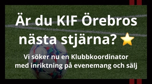 Allsvenska flick- och damelitfotbollsklubben KIF Örebro söker nu en till stjärna som kan utveckla och förbättra upplevelsen i våra evenemang, ett led i vår strategi att bli en av Sveriges mest attraktiva damfotbollsklubbar. Klubben letar efter en driven och engagerad klubbkoordinator, med säljinriktning, som tillsammans med övriga i teamet ska lyfta klubbens match-, partner-, spelar- och klubbupplevelse till nästa nivå! Rollen som klubbkoordinator är heltid och innebär att du jobbar nära klubbchefen. Du blir en viktig kugge i klubbens operativa arbete gällande sälj och arrangemanget av damallsvenska matcher och andra klubbevenemang. I dina ansvarsområden ingår: - Säkerställa genomförandet av de damallsvenska matcherna - Utveckla matchupplevelsen för A-, F19- och F17-lag - Bidra till att klubben når försäljningsmålen - Utveckla och bidra till genomförande av partnerupplevelsen - Utveckla och bidra till genomförande av klubbens övriga träffar/evenemang (ex CSR eller interna möten) - Bistå klubbchef i operativa och praktiska frågor - Vid behov stötta föreningen i den externa kommunikationen Du ingår i ett grymt engagerat team som varje dag jobbar tillsammans för att förverkliga tjejers fotbollsdrömmar genom att förbättra förutsättningarna för tjejer att spela fotboll från barnsben till elitnivå. I KIF Örebros ena verksamhetsben finns elitverksamhet med damallsvenskt A-lag samt utvecklingslagen F19 och F17. I det andra benet har klubben flickverksamhet med flera ungdomslag. Utöver den sportsliga verksamheten brinner KIF Örebro för samhällsfrågor och jobbar aktivt för att bidra till ett bättre och mer hållbart Örebro genom att t ex arbeta med att förbättra barns fysiska och psykiska hälsa.?Både i egen regi och i samarbete med andra. Framåt vill KIF Örebro fortsätta ta kliv mot toppen för att vara en av Sveriges attraktivaste och bästa damfotbollsklubbar. En viktig del i den resan är en förbättrad upplevelse i och runt klubben - inte minst de damallsvenska hemmamatcherna. Där kommer din roll vara som viktigast! Din bakgrund: - eftergymnasial utbildning - sannolikt 1-2 års erfarenhet av projektledning - helst 1-2 års erfarenhet av evenemang - mycket meriterande med bakgrund inom försäljning Personliga egenskaper: Vi söker dig som är driven, nyfiken, gillar sociala sammanhang, är relationsbyggande, och gillar att utveckla upplevelser. Givetvis känner du en stor tillfredsställelse i att ta aktiviteter eller evenemang från idé till genomförande med en hög kvalitetsnivå. Du är självgående och gillar att ta ett stort eget ansvar i ditt dagliga arbete. Du har sannolikt ett bultande föreningshjärta i kombination med kommersiellt driv. Omfattning: Tjänsten är på heltid (40 h/vecka), där vi tillämpar sex månaders provanställning. Arbete på kvällar och helger förekommer. Välkommen med din ansökan senast 15 januari 2024. Urval kommer att ske löpande. Frågor besvaras av klubbchef Elin Stengarn 073-320 00 16. Maila din ansökan med personligt brev och CV till: elin.stengarn@kiforebro.se För den nyfikna: Här kan du läsa mer om OBOS Damallsvenskan>