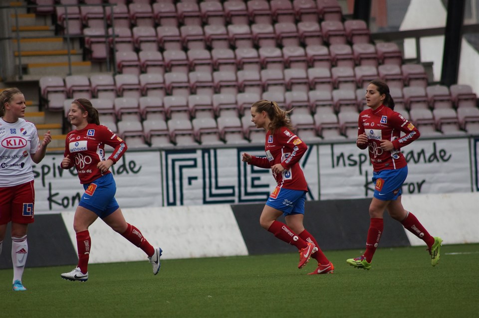 Strålande väder. Det är det alltid när vi möter QBIK. Och det var även strålande tider, för det brukar bli roliga matcher. Så även idag. QBIK hade jobbigt med en kraftig sjukstuga, men det märktes inte av i matchinledningen som var mycket jämn. Vi kom inte upp i samma nivå som senast mot Eskilstuna, men halvvägs in i första började vi tugga igång. Då började vi hitta ett behagligt lugn. Vi vårdade boll och spelade oftast enkelt. Addes 1-0 på Lunkans fina djupledsboll gav oss råg i ryggen och Fatous 2-0 kom snabbt därpå efter mycket fint förspel av Sejde och Adde. Enkelt och snabbt är så gott. Jennie gjorde på egen hand 3-0 och på mindre än tio minuter hade vi skapat ett väldigt fint överläge. Sammantaget var första halvlek ett resultat av många, fina, individuella insatser mer än välorganiserat och gediget lagarbete. Ett kritiskt öga noterade för många, långa, omotiverade bollar när vi hade gott om yta framför oss och få spelvändningar. Varför spelar vi oftast dit näsan pekar och det finns mest folk? Andra halvlek kändes snarlik den första och vi jobbade på det vi pratade om i halvtid. Vi skapade en hel del chanser och borde definitivt ha utnyttjat dem bättre än det 4-0-mål som Adde gjorde för att vara helt nöjda. Med det sagt så ligger ribban högt. 4-1 kom efter en straff som det råder delade meningar om. Någon tycker att det var ok, någon annan tycker att det var mycket billigt. Straff blev det och det kunde vi inte göra något åt. Mimmi, med mycket rogivande spel, gick åt rätt håll men nådde inte riktigt den fint slagna straffen. Vi gjorde en bra match mot ett bra motstånd. Hur svettig var Mimmi egentligen? Det finns saker vi behöver fortsätta jobba på, det finns det alltid. Formen är bra och det behöver vi. Nästa match gäller slutspel. Håll igång. Bara våra mål 30’ 1-0 Adde(Lunkan) 32’ 2-0 Fatou(Sejde, Adde) 37’ 3-0 Jennie 62’ 4-0 Adde(Maria) Tack till QBIK med, som alltid mycket trevliga, ledarstab. Linnea är äntligen opererad och på gång. Känns mycket bra.