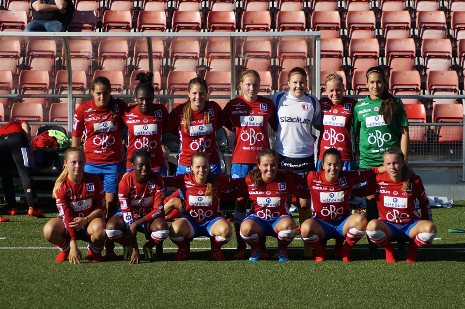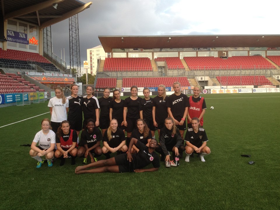Seriefinal borta mot Eskilstuna. Tunavallen är en mycket trevlig arena och det brukar brinna en del under våra matcher där. Så även denna gång. Eskilstuna öppnade mycket rappt och gjorde sånär 1-0 redan i första minuten, men vi höll rent och sedan började vi spela fotboll. Första halvtimmen var vi förbaskat bra. Vi kom runt på kanterna, täckte upp för varandra och bytte positioner, vände spelet, hade tålamod, rörde oss fint utan boll, högg på returer, spelade enkelt och pratade. Riktigt jäkla bra. Och målen kom i en strid ström. Efter en halvtimme stod det 0-3 efter två Linda- och ett Addemål. Adde åkte på en ful spark bakifrån, men det är sådant som händer i fotboll. Tyvärr tappade vi fattningen i samband med det och framför allt vårt fina spel. Och det utnyttjade Eskilstuna direkt. Deras reducering strax innan halvtid gav dem ny energi, men Lindas hattrick i halvlekens sista minut återställde ordningen. Bra snack i halvtid och vi började andra halvlek som vi spelade stora delar av första. I fem minuter. Sedan hände något. Plötsligt började vi spela svåra bollar med en touch, parallellt och tjonga långt. Det var riktigt illa. Men det är av våra misstag vi lär oss. Vi redde ut situationen trots att vi inte var i balans och Eskilstuna hittade bara en reducering innan Fatou fick oss att andas ut med ett distinkt avslut i bortre. Vi tar med oss det goda, lär oss av det mindre bra. På söndag är det en ny holmgång mot QBIK. Vi vet vad som gäller. Håll igång. Mål & sånt 08’ 0-1 Linda Hallin (Adde) 14’ 0-2 Linda Hallin (retur efter Michelle skott) 29’ 0-3 Adelisa Grabus (Linda) 41’ 1-3 Sara Linnakallio 45’ 1-4 Linda Hallin (Wilma Mo) 60’ 2-4 Cajsa Åkerberg 61’ Varning Maria Synnerdahl 78’ Varning Sejde Abrahamsson 86’ 2-5 Fatoumatta Gassama