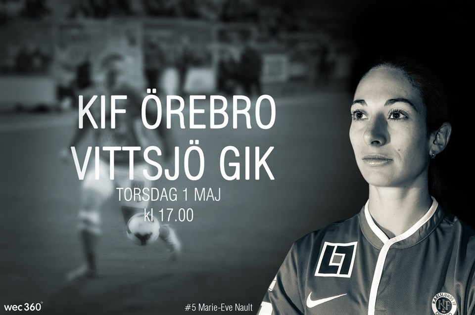 Vi har första maj framför oss, men även damallsvenskt möte mellan KIF Örebro vs Vittsjö på Behrn Arena kl. 17.00. Lagen möttes så sent som den 26 mars i svenska cupens kvartsfinal då KIF stod som segrare (9-8) efter ett thrillerdrama där matchen avgjorde efter straffar. Båda lagen har hittills vunnit en av tre spelade matcher och gästerna kommer från en 3-0-vinst senast mot AIK. Laget har flera namnkunniga spelare i form av Kirsty Yallop, Hayley Lauder, Elin Nielsen och vassa Jane Ross. KIF gav regerande svenska mästarna FC Rosengård en riktig fight senast, men föll till slut med 1-0 på bortaplan. Vår skyttedrottning Sarah Michael är tillbaka efter sjukdom och kommer givetvis att betyda en hel del i anfallsspelet och på skadefronten har fortfarande målvakten Lina Domberg ryggproblem. Michelle De Jongh ådrog sig en knäskada under hennes comeback i F17-landslaget i matchen mot Holland och är inte heller tillgänglig. Truppen Stephanie Labbé Elin Adolfsson Sara Nordin Ellen Karlsson Susanna Lehtinen Marie-Eve Nault Marina Pettersson-Engström Annika Kukkonen Irena Martinkova Lucie Martinkova Sanna Talonen Sarah Michael Elin Magnusson Ogonna Chukwudi Jennie Wecksell Maria Synnerdahl Linda Hallin Julia Spetsmark Varmt välkomna till vår hemmaborg Behrn Arena!