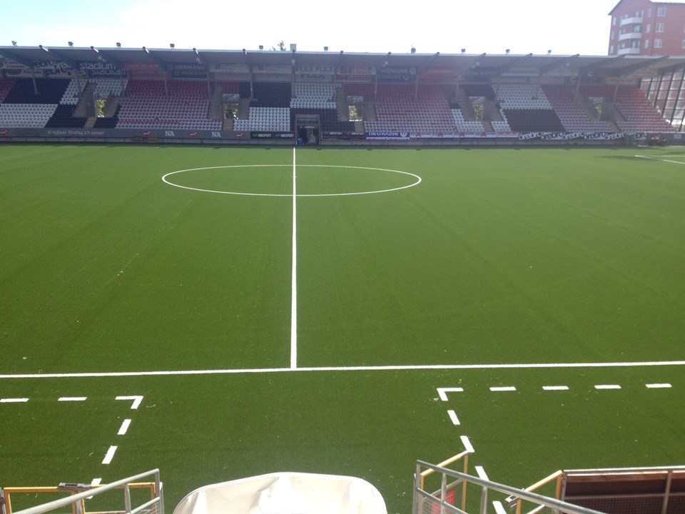 Som alla känner till så har det under sommaren lagts ny matta på Behrn Arena och nu är den äntligen klar. Vi har varit tvungna att träna på Karlslunds Arena och Rosta Gärde, men idag gjordes den första träningen på den nya mattan och skillnaden är stor. Den är betydligt mycket mjukare än den tidigare mattan och bollen rullar lite annorlunda nu, men det är mest pga att den är så ny. Vi hoppas självklart att den håller sig så mjuk och fin även i framtiden, så vi sliter förslitningsskador. //Coach