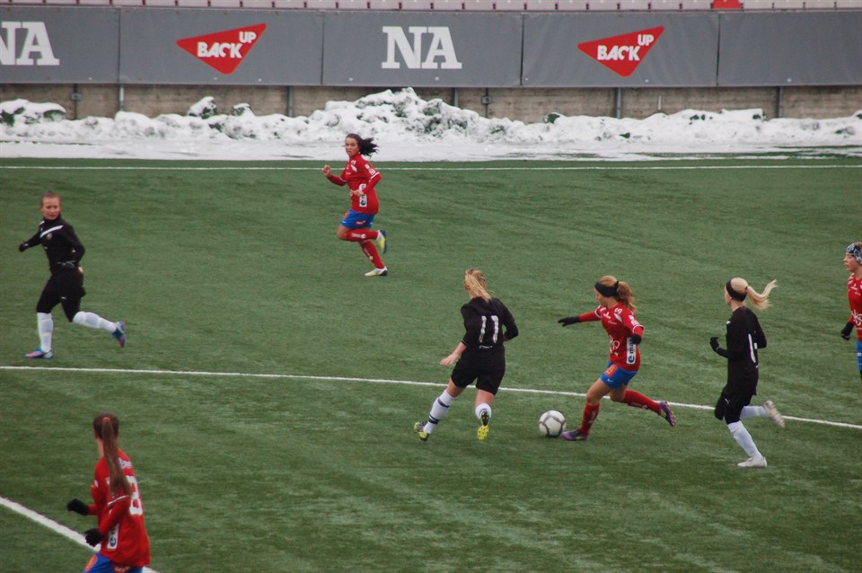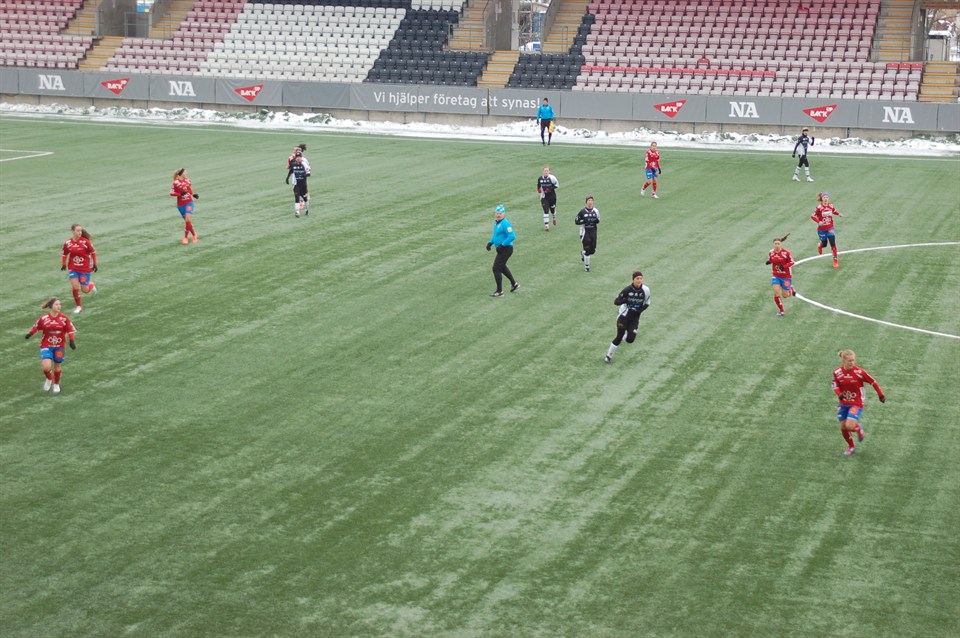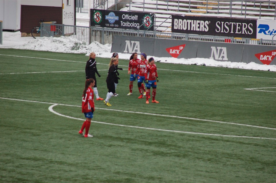 Idag spelade vi vår första match för året och vi tog emot lokal laget ÖSK Söder hemma på Behrn Arena. Det blev lite konstigheter med matchtiden, då det hade blivit dubbelbokat, så vi var tvungna att flytta matchen till kl 12:00 istället för 11:00. Det var jättebra att det funkade för Söder. Tyvärr fick vi många avhopp till matchen i helgen och det var Sjölla och Lejla som inte kunde vara med pga skadade knän, Matilda som har blivit sjuk och Linnea som var bortrest. Dessutom så var Fanny med på bänken trots en skada, som backup till Lina som också var "halvskadad". Vi gjorde det bästa av situationen i alla fall. Startelvan: Lina - Johanna, Rebecca, Hannah(C), Jennie - Wilma, Ellen, Stina - Frida, Gabbe, Sejde Avbytare: Ahlin & Lundqvist Det blev en väl spelad match från våran sida, då vi dominerade helt och hållet i första halvlek. Tyvärr så hamnade vi i "Arsenal-Syndromet" som dem hade för några år sedan, då vi ville gå in med bollen, istället för att skjuta när vi hade läge. Vi styrde spelet som sagt och hade många lägen där vi kunde skjuta, men vi valde att fortsätta rulla istället. Första halvlek slutar 0-0 efter totalt dominans från våran sida. I andra halvlek så jämnade spelet ut sig lite och Söder får hålla i bollen lite längre än vad dem fick i första. Söder skapar de hetaste målchanserna i andra efter två hörnor, men Lina var helt strålande i målet och gjorde riktigt bra räddningar. Den hetaste chansen för oss hade Gabbe, som lekte lite katt och råtta med Söder försvaret och skjuter tätt utanför efter att ha gjort bort 3-4 Söder spelare. Matchen slutar 0-0, men jag är ändå väldigt nöjd med spelet, speciellt efter våran första halvlek. Vi har ett nytt spelsystem, men gör det ändå väldigt bra. Bra första match tjejer!! Plus idag får..........? Gabriella Kalkan - Var på spelhumör idag, men hade många lägen där hon kunde ha skjutit istället för att fortsätta leka med bollen. Wilma Franssila - En riktig pådrivare idag. Spelade på ett rakt mittfält idag istället för den defensiva rollen och gjorde det riktigt bra. Den enda idag som tog djupledslöpningar, när vi stod utanför Söders straffområde och rullade boll. Hannah Uhlan(C) - Har utvecklat sina uppspel riktigt ordentligt och idag var det mer än godkänt. Stabilt försvarsspel och bra offensivt spel. Följde med upp i anfall när tillfälle gavs. Träning imorgon kl 16:30 på Behrn. Nu har vi spelat den första matchen och man såg att det var roligt att spela. Nu fortsätter vi på den här vägen! /Coach Omid & Salle