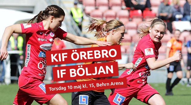KIF Örebro vann med hela 4-0 över IF Böljan på ett somrigt Behrn Arena. Kristi Himmelfärdsdag bjöd på underbart försommarväder när KIF Örebro mötte IF Böljan i Elitettans femte omgång. Böljan började optimistiskt med hög press, men KIF Örebro tog tag i taktpinnen efter de första tio minuterna och dominerade sedan soklart den första halvleken. Efter 20 minuter hade Courtney Strode och Addison Steiner varsin bra chans och kort därefter var Adelisa Grabus framme och rullade en boll mot stolpen som målvakten lyckades tippa till hörna. 1-0 kom efter 25 minuter då Adelisa Grabus från vänsterkanten lyfte ett högt och långt inlägg som gick över målvakten mot bortre stolpen där Emma Lindén störtade fram och gjorde mål. Några minuter senare kom 2-0 då Rebecka Holm styrde upp ett anfall från mittplan och Addison Steiner frispelades och hade bara att raka in bollen i öppet mål. KIF fortsatte att rada upp chanser men lagen gick till halvtidsvila med 2-0 på tavlan. I det läget var det svårt att hitta något som talade för att Böljan skulle kunna vända matchen. - Det ser väldigt bra ut! Vi spelar snabbt och djupledsspelet är riktigt bra, kommenterade Hanne Gråhns från läktarplats i paus. Andra halvlek inleddes som den första med KIF-dominans och målchanser, men nu skapade även Böljan ett par hyggliga lägen. Efter 58 minuter kom 3-0 till KIF. Målet såg lite märkligt ut när Courtney Strode först passade över till Addison Steiner, som tappade balansen när hon hade bollen. Addison visade dock vilja, reste sig, behöll bollen och trängde sig förbi sin back och sköt i mål. Starkt! Ett par minuter senare kom 4-0. Åter var det Adelisa Grabus som tog sig fram på vänsterkanten. Adelisa såg att Rebecka Holm löpt sig fri i straffområdet. Holm fick bollen och vrickade in den vid bortre stolpen. I och med detta avgjordes matchen definitivt och KIF hann med att skapa ett par chanser till innan slutsignalen gick. Frida Abrahamsson var fullt naturligt nog nöjd efter matchen: - Väldigt bra genomförd match från vår sida. Vi hade full kontroll från början och vi har förbättrat vårt djupledsspel mycket. Vi vågade löpa i djupled och värderade också situationerna bra, kommenterade Frida Abrahamsson och fortsatte: - Mest nöjd är jag med attityden hos alla i laget. Vi skulle bara vinna matchen!, utropade Abrahamsson. KIF Örebro - IF Böljan | 4-0 Matchens lirare: Addison Steiner, KIF och Linda Nöjd, IF Böljan Publik: 302 Så här spelade KIF Örebro: Mimmi Paulsson-Febo Frida Abrahamsson, Emma Östlund, Maja Regnås Adelisa Grabus (ut 81), Rebecka Holm, Lejla Basic, Freja Olofsson (ut 65), Emma Lindén (ut 69) Addison Steiner, Courtney Strode Inhoppare: Maja Andersson (in 65), Jonna Dahlberg (in 69), Sara Lilja Vidlund (in 81) Text: Jan Holgersson