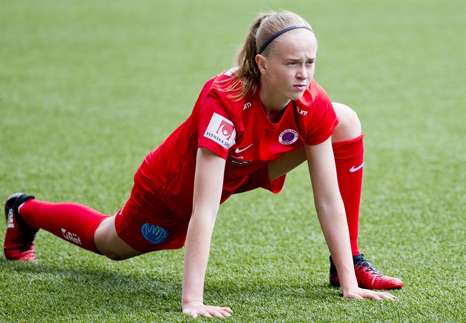 F19-landslaget är nu hemma efter EM-kval där laget tyvärr inte lyckades ta sig vidare efter att ha förlorat en målskillnadsaffär mot Nederländerna. Vi kollar läget med KIF:s Emma Östlund. Besviken, gissar jag? - Både och, faktiskt. Det är såklart tråkigt att vi inte får spela EM med den fina grupp vi har, men jag själv har ju trots allt en chans till, funderar Emma Östlund. Berätta om matcherna! - Första matchen mot Ungern var jättekul. Jag var glad över att få starta och kände att vi följde matchplanen och var samspelta trots att det var premiär. Vi missade en del lägen, men eftersom vi skapade hela tiden kände det som om vi skulle vinna matchen och det gjorde vi efter ett mål i andra halvlek, berättar Emma, och fortsätter: - Andra matchen mot Nederländerna kände vi skulle bli tuffast. Vi började lite nervöst, men var bra defensivt och tog ledningen på straff efter en kontring. Vi fortsatte spela vårt spel men på slutet kvitterade de, vilket var väldigt surt för oss. Som helhet gjorde vi dock en bra match, betonar Östlund. - Kvalet avslutades med match mot Slovenien och vi visste att vi behövde vinna stort för att få en bra målskillnad. Det var nog negativt för oss som blev stressade av det. Men, i andra halvlek hittade vi tillbaka till vårt spel, men två mål och vunnen match räckte inte för att vi skulle ta oss vidare. Hur mycket speltid fick du? - Fullt! Alla tre matcherna. Hur gick det för dig själv, tycker du? - Det gick bra, tycker jag. Man kan såklart alltid göra saker bättre, men jag är nöjd med min och även lagets insats, tycker Emma Östlund. Nu är du hemma igen, laddad för Elitettan-premiären? - Absolut! Det ska bli väldigt roligt och jag ser fram emot att det drar igång! Lycka till! - Tack, tack, avslutar Emma Östlund. Text: Jan Holgersson Foto: Bildbyrån